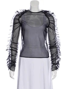 MOLLY GODDARD soft tulle ruffle long sleeve top